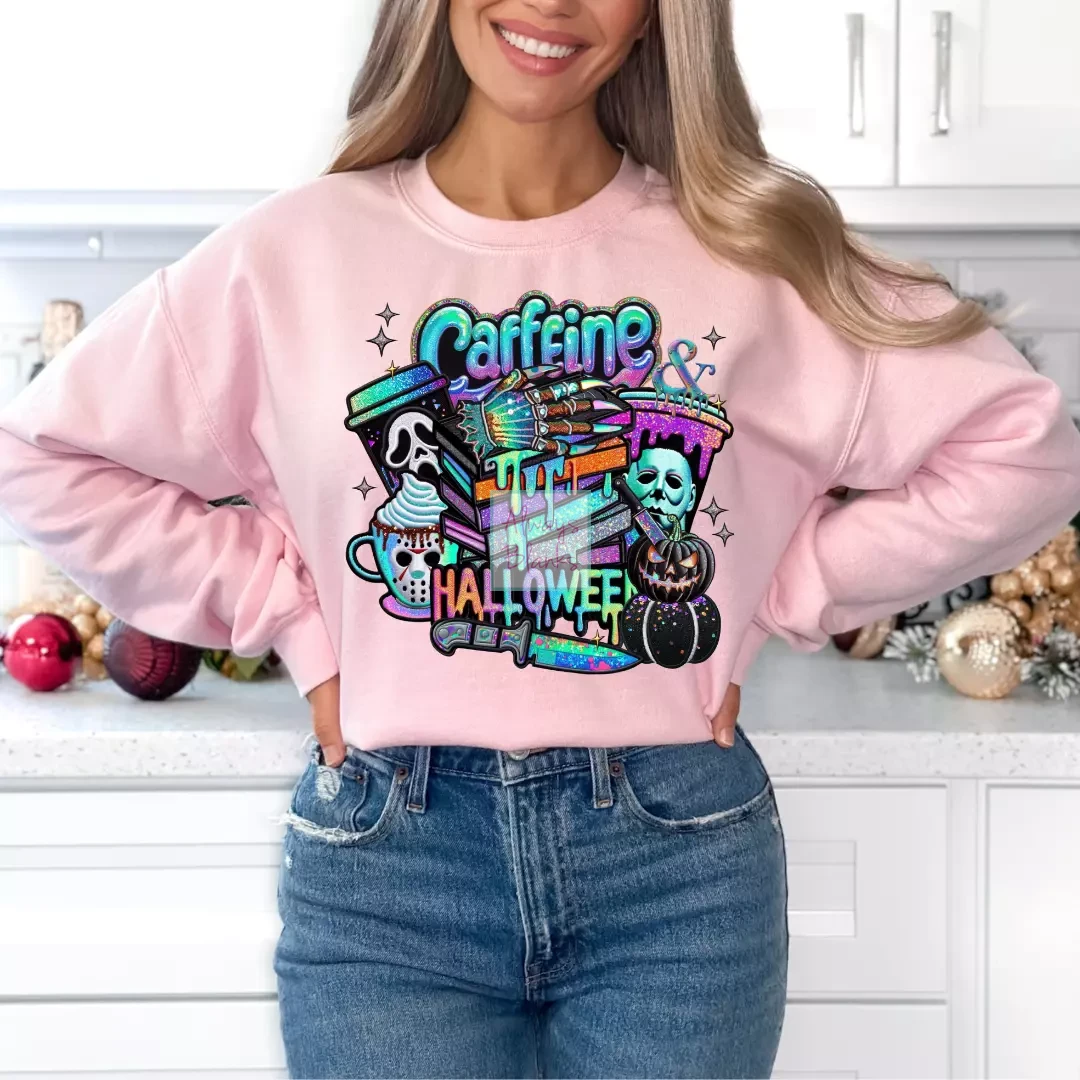 Caffeine and Halloween Faux Embroidery Halloween DTF TRANSFER or UV DTF STICKER DECAL
